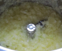 "Mixtopf geschlossen" geben und 5 Sek. / St. 5 zerkleinern. Mit dem Spatel nach unten schieben und Butterschmalz hinzufügen. 4,5 Min. / Varoma / St. 1 dünsten. - Crème-fraîche hinzufügen und 5 Sek. / St. 3 verrühren. Diese Masse etwas abkühlen lassen.