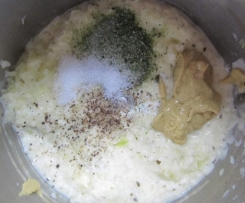 ). - Senf und Gewürze zu der Zwiebelmasse geben .....