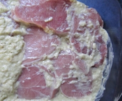 - Die Schnitzel mit der Zwiebelcreme bestreichen ....