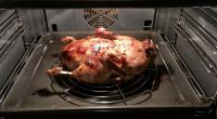 Hatte dazu ein Kuchengitter auf das Backblech gestellt und die Ente darauf gegeben.