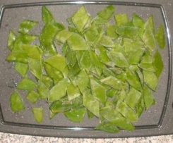 Gefrorene Zuckerebsen in Rauten schneiden, beiseite stellen.