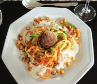Lecker, aber die Karotten mit dem Spiralschneider zu schneiden war mir zu viel Arbeit. Würde nächstes mal Falafel dazu machen und die Möhren einfach in Scheiben schneiden plus Couscous und dann als Hauptmahlzeit zubereiten.