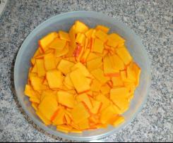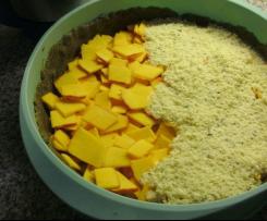 Anschließend den geh. Kürbrbis locker darin einschichten. - Danach die käse-Sahne-Mischung darüber gießen.