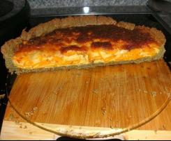 - Die Tarte im Backofen bei 180°C Umluft/ 40 Min. goldbraun backen; ggf. nach der Hälfte der Backzeit die Tarte mit Alufolie abdecken damit sie nicht zu dunkel wird.