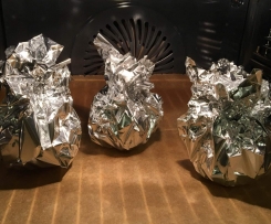 Nun die Alufolie oben zusammen drücken und die Kartoffeln in den Ofen geben. Je nach Größe und Dicke dauert das ca. 1 - 1,5 Std. bis die Kartoffeln wirklich gar sind.