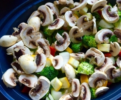 "Mixtopf geschlossen" geben und den Varoma mit dem Gemüse aufsetzen.20 Minuten auf Varoma-Temperatur bei Stufe 2 kochen.