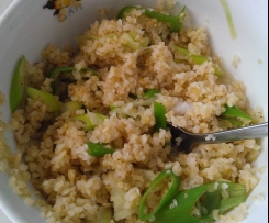 "Linkslauf" / 100°C dann später 90°C garendanach fertigen Bulgur in eine weitere kleinere Schüssel geben und die Zwiebeln unterheben und zur Seite stellen