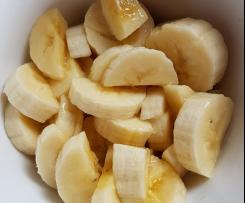 Salat in die bereit gestellte Schüssel umfüllen. - Zitronenhälfte(n) auspressen. Banane schälen, längs halbieren und in etwas dickere Scheiben schneiden. In die kleine Schüssel geben und 2 EL Zitronensaft darüberfließen lassen. Wer auf Nummer sicher gehen möchte, hebt die Bananen noch einmal unter. Deshalb auch noch ziemlich feste gelbe und keine überreifen Bananen verwenden. Bananenstücke incl. Zitronensaft dann mit zum restlichen Salat geben - noch nicht unterheben.