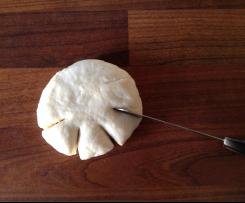 - Die Teiglinge mit der zusammengedrückten Seite nach unten legen und leicht flachdrücken. Den Rand mit dem Messer einschneiden (s. Foto).