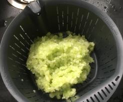 2. Gurke umfüllen, ich lasse die Gurke dann im Gareinsatz abtropfen.