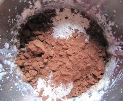 - Salz, Mehl, Kakao und Backpulver hinzufügen.