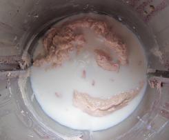 - Die Masse mit dem Spatel nach unten schieben und Joghurt und Milch hinzufügen.