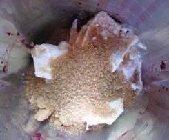 - Butter und die drei Zuckersorten in den Mixtopf wiegen (Im Originalrezept werden insgesamt 300 g Zucker verwendet. Wer es gern süß mag, sollte auch mehr nehmen.)