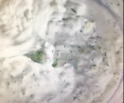 Soße abschmecken, vielleicht noch etwas Salz. - Alle Zutaten (außer Dill und Gurke) in den Mixtopf geben für 25 Sek./Stufe 3 vermischen.