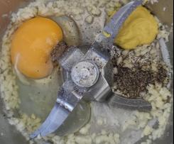 - Salz, Pfeffer, Senf, Zitronensaft und Ei dazugeben und