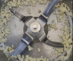 - Den Knoblauch in den Mixtopf geben und 5 Sek./Stufen 5 zerkleinern. Mit dem Spatel nach unten schieben.