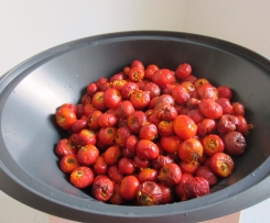 - Hagebutten waschen und Stiele und Blütenansätze entfernen.