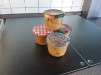 Um Alufolie zu sparen und die Wurst gleichzeitig haltbar zu machen, kann man sie auch in Schraubgläser füllen und diese, wenn sie in den Varoma passen, dort dämpfen. Mit Deckel zu