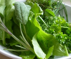 - 1 Bund Kräuter aus dem Garten, Petersilie, Schnittlauch, Thymian, Borretsch etc.