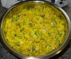Ich hatte einen 5 Ltr. Eimer ca. 3/4 voll Löwenzahnköpfe gesammelt. Ich habe dann mit einer Schere versucht nur die gelben Blütenblätter abzuschneiden. Der grüne Teil der Blüte bewirkt das der Sirup etwas bitterer wird. Wer dies mag kann natürlich die grünen Blütenblätter dran lassen. Ich mach mir aber lieber die Arbeit und schnippel das weg, zumal in den Blüten häufiger kleine Insekten sind und diese auch gleich mit rausgefallen sind.