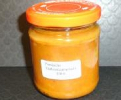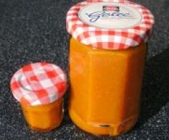 Bei der Verwendung von ganzen Gewürzen bleibt die Marmelade orangfarben, bei gemahlenen Gewürzen wird sie eher bräunlch im Aussehen.