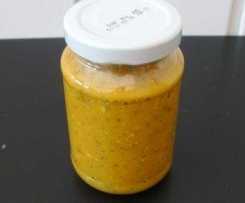 - Zerkleinerte Kürbiskerne hinzu geben, 30 Sek./ St. 6 unterrühren, sofort in heiß ausgespülte Twist-off-Gläser füllen und abgedunkelt langsam auskühlen lassen.
