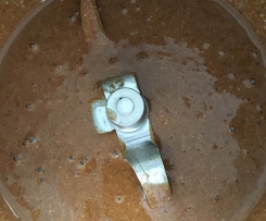 "Mixtopf geschlossen" muss nicht komplett gesäubert werden. - 210 g Haselnussmus (im Topf sind wahrsch. noch ca. 20 g verblieben) wieder in den