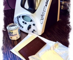 Die Masse etwas abkühlen lassen (4-6 min.) und dann die halbe Dose Milchmädchen (200 gr.) ca. 45 Sekunden/Stufe 3 unterrühren.