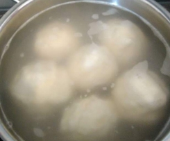 Den Tipp mit dem Mehl sehr gut, hat funktioniert.. Jedoch "zu Wasser lassen" finde ich ein bißchen sehr ungenau... in kochendes, siedendes oder nur heißes Wasser? Gesalzenes Wasser oder normales? Ich hab sie in heißem Wasser ziehen lassen, was nicht ausreichte es ergab nur eine Suppe die Knödel wurden nicht fest... ärgerlich weil Lebensmittel und Zeitverschwendung...