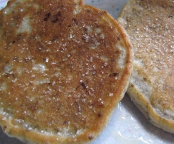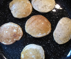Fett in einer Pfanne erhitzen (nicht zu heiß) und den Teig esslöffelweise hineingeben. Ich habe jeweils einen gehäuften Esslöffel Teig pro Pancake genommen - ca. 8 cm Durchmesser.