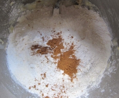 Mehl, Backpulver, Zucker, Salz und evtl. Zimt hinzufügen ......