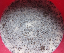 Die Chia-Milch-Mischung und die weiteren 50 g Milch dazu wiegen .....