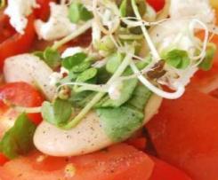 2. Feta-Käse in kleine Stücke schneiden, dazugeben und Salz,Pfeffer, Olivenöl mitvermischen, 15 Min. ziehen lassen.