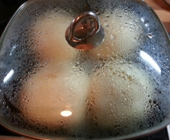 In eine Pfanne ewas Öl geben, eine Tasse Wasser zufügen und den Boden salzen.4 der Kugeln ins kochende Salzwasser legen, Deckel drauf und für ca.15 Min backen.Wenn das Wasser in der Pfanne leer ist, sind auch die Dampfnudel gar...Guten Appetit