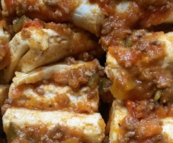 Die Bolognese Sauce ist sehr variabel. In der Herbst-Zeit verwende ich statt Paprika Kürbis-Fleisch.