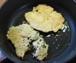 Du kannst sie in der Pfanne in Öl ausbacken, ist dann nicht so fett.