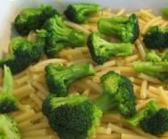 Habe die Nudeln allerdings im Topf gekocht und den Brokkoli gleich mit den Nudeln zusammen gekocht. Schichten könnte ich zwar dann nicht mehr, aber das tat dem Geschmack ja keinen Abbruch...