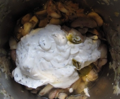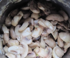 Wer keine Champignons mag, kann stattdessen auch in Scheiben geschnittene Möhren verwenden. Dann verlängert sich aber sicher die "Dünst-Zeit" im