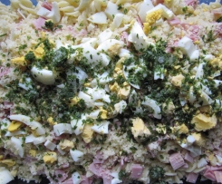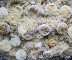 Hat ganz gut geschmeckt. Nur die in Scheiben geschnittenen Eier oben drauf würde ich in Zukunft weglassen bzw. mit rein hacken, die werden so komisch hart und kamen nicht gut an.