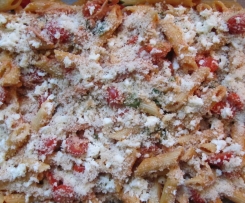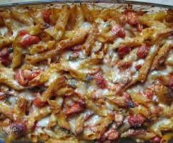Das ist ein sehr leckerer Auflauf. Ich hatte dieses Gericht gemacht, als wir Besuch bekommen hatten, und die Menge einfach entsprechend verdoppelt. Für die Vegetarier dann eine Auflaufform ohne Schinken und für den Rest wie im Rezept beschrieben. Anstatt Kaffeesahne habe ich 7 % ige Kochsahne verwendet. Außerdem habe ich noch in Scheiben geschnittene, frische Champignons hinzugefügt und dafür ein bisschen weniger Datteltomaten. Der Auflauf ließ sich auch sehr gut vorbereiten. Allerdings hatten die Nudeln bei der zuvorigen Vorbereitung schon einiges an Soße aufgesogen, so dass ich vor dem in den Ofen schieben des inzwischen erkalteten Auflaufs noch einiges an Brühe hinzugegeben hatte, damit das Ganze nicht zu trocken ist. Aber dies war nur nötig, weil hier vorbereitet wurde. Dazu gab es eine Salatbeilage und alle Gäste waren begeistert. Vielen Dank für das Einstellen dieses wirklich guten und unkomplizierten Gerichtes und auch noch ein großes Lob für die gute Beschreibung der einzelnen Zubereitungsschritte.