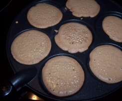 Anschliessend den Teig in die Pan Cake Pfanne in die einzelnen Mulden geben und braten…
