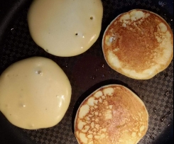 Handtellergrosse Pancakes in einer beschichteten Pfanne mit etwas Öl bei mittlerer Hitze goldgelb ausbacken.
