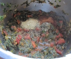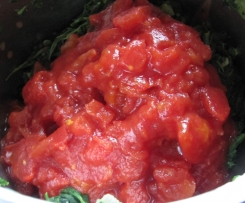 Die gehackten Tomaten zum Spinat geben ....