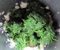 Den Spinat hinzufügen (der wog bei mir ausgedrückt noch 430 g) .....