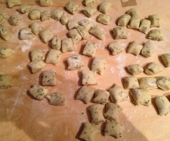aus dem Teig Rollen formen und kleine Stücke abschneiden