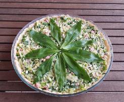 7. Belag auf den Teig verteilen, wer mag kann sie mit Bärlauchblätter verzieren, in den vorgeheizten Backofen geben und ca. 40-50 Min. backen. Backzeit kann je nach Backofen variieren.