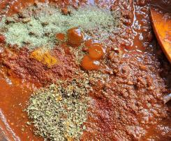 - Je nach Geschmack mit Basilikum, Pfeffer, Salz, Paprika süss und Paprika scharf, Chili-Pfeffer, gem. Chili und einem halben Teelöffel Zucker, abschmecken.
