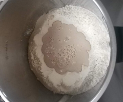 "Mixtopf geschlossen" abgedeckt mit einem Geschirrhandtuch 20min stehen lassen .Jetzt die restlichen Zutaten für den Hefeteig in den