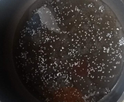 Wenn das Fett geschmolzen ist den Boden der Pfanne mit Groben Salz bestreuen.