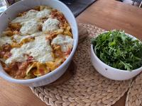 - Tortellini nach Packungsangabe kochen und in eine große oder 3 kleine Auflaufformen füllen. Putenwurst von Hand rupfen und unter die Tortellini mischen.